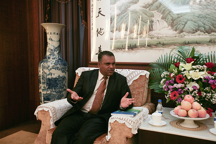 5月30日下午,應(yīng)寶鷹集團董事局主席古少明邀請,毛里求斯共和國路易港市市長考利甘·穆罕默德·歐瑪(Kholeegan Mohammad Oumar)一行赴寶鷹集團參觀考察。
