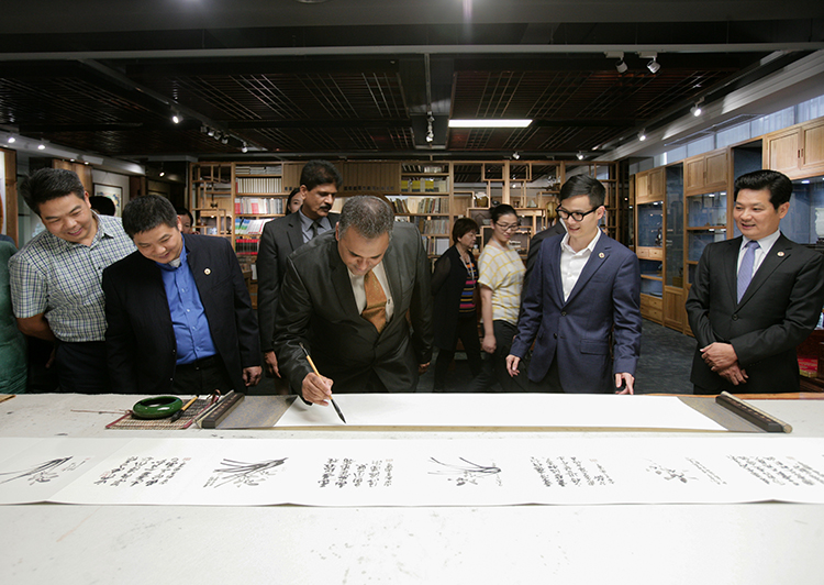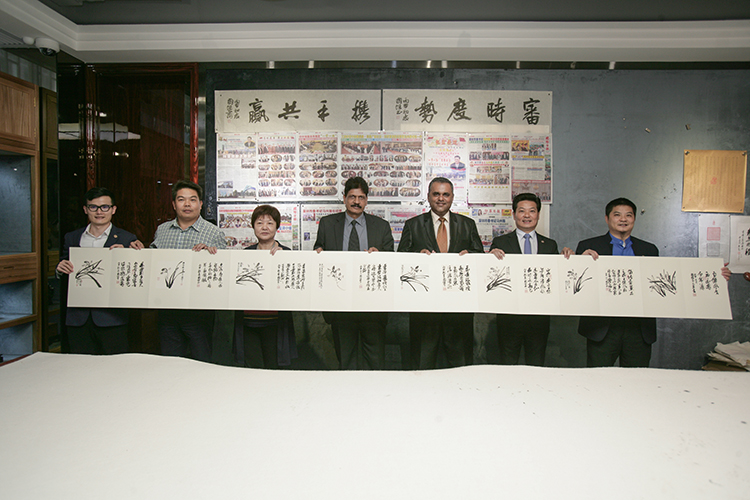 合影(左一:曾智;左二:胡蘭萍;左三:古樸;左四:杰伊·穆羅;左五:考利甘·穆罕默德·歐瑪;右五:古少明;右四:李麗蓉;右三:馮秀坤;右二:張冰冰;右一:古少波)