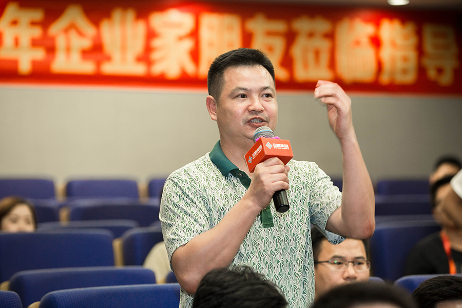 在接下來的交流活動中,青年企業(yè)家代表們踴躍發(fā)言,就企業(yè)文化建設(shè)、如何在一帶一路沿線國家蓄力發(fā)展等問題與古樸副總裁展開了熱烈的互動。深圳市鄉(xiāng)下仔綠色食品有限公司總經(jīng)理曾國忠就企業(yè)培訓(xùn)中面臨的問題與古樸副總裁展開了討論,曾國忠總經(jīng)理說,現(xiàn)在各種培訓(xùn)開展火熱,很難去選擇一個標(biāo)準(zhǔn)去判斷培訓(xùn)的價(jià)值與意義。古樸副總裁從培訓(xùn)的目的就是提高管理者及員工“自學(xué)、自立”能力這一角度回答了相關(guān)問題。