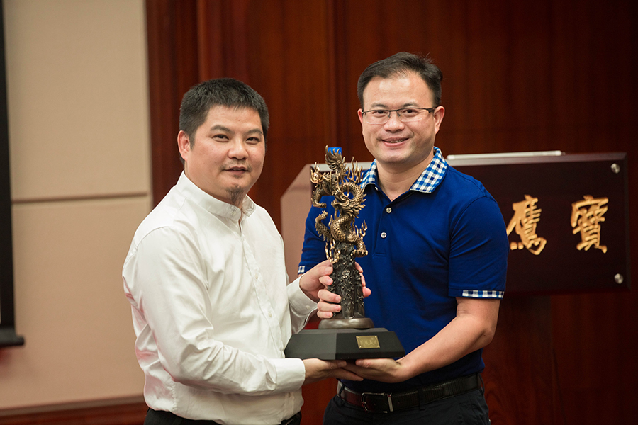 精彩的討論獲得了在場企業(yè)家們的陣陣熱烈掌聲。討論會后,深圳市龍崗團(tuán)區(qū)委書記郭躍華、團(tuán)區(qū)委副書記鄒慧鋒共同向古樸副總裁贈送了紀(jì)念品。