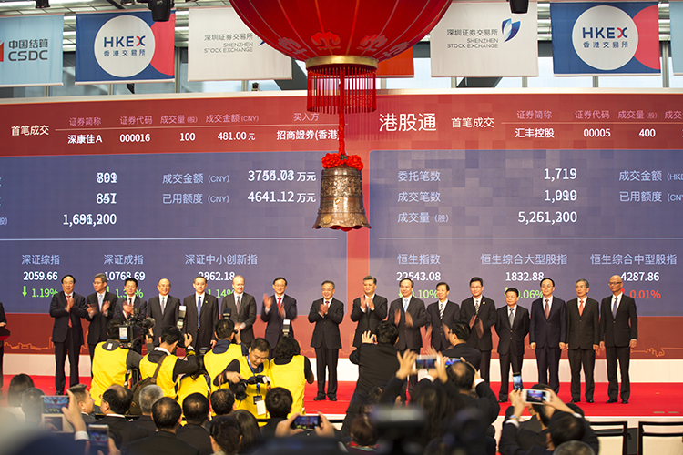 12月5日,“深港通”正式啟動(dòng),深圳香港兩地同步舉行開通儀式。廣東省委書記胡春華、證監(jiān)會(huì)主席劉士余、深圳市委書記馬興瑞等領(lǐng)導(dǎo)出席并見證中國資本市場(chǎng)這一重大歷史事件。