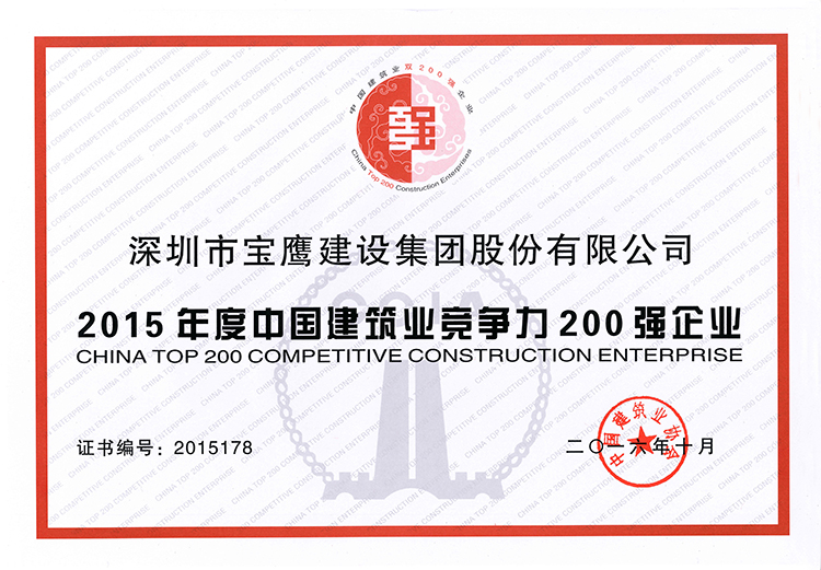 寶鷹集團(tuán)榮獲2015年度中國建筑業(yè)競爭力200強(qiáng)企業(yè)