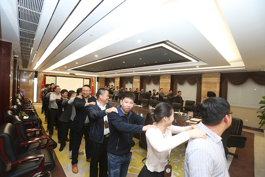▲寶鷹集團副總裁陳龍與同事互動培訓