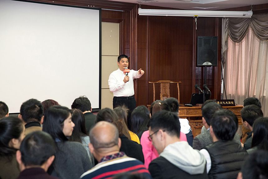 ▲寶鷹集團總裁成湘文講授“工程法”